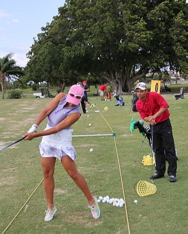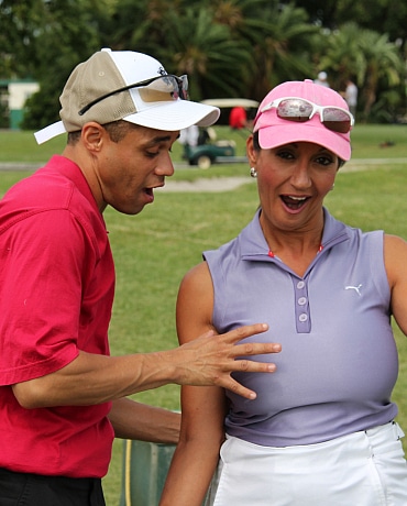 Tiger is in a slump with his golf game! He asked me for a lesson so he can get back on top. Well I got him on top alright!!!! Check out these still photos of our golf lesson. I will be posting the scene today as well.